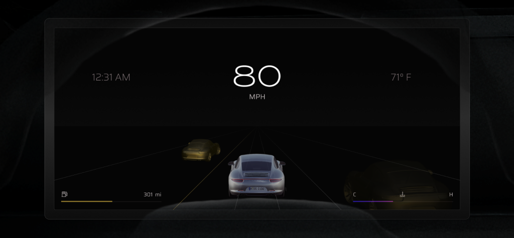 Porsche cluster design architecture and information is in my opinion one of the leading experiences of luxury performance. However, the monochromatic and technical minimalism leaves more Porsche flavor to be desired.