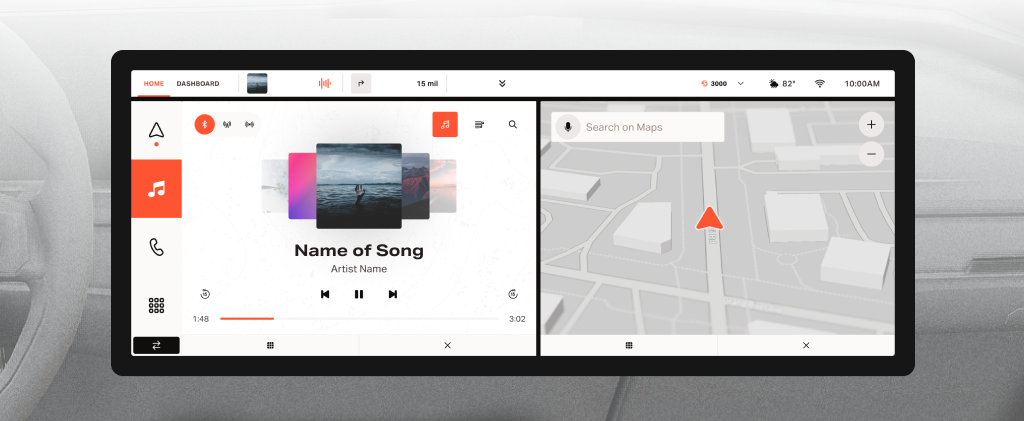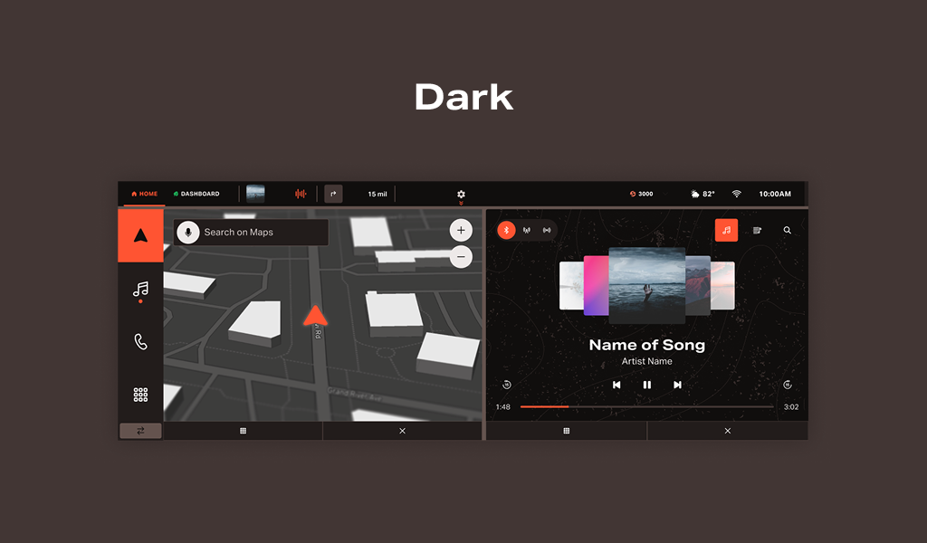 Infotainment conceptual design for Scout Motors EV relaunch, focusing on the balance between physical and digital controls. This 3 month process lead to dozens of iterations on information architecture, split screen functionality, vehicle controls, and off-roading views.